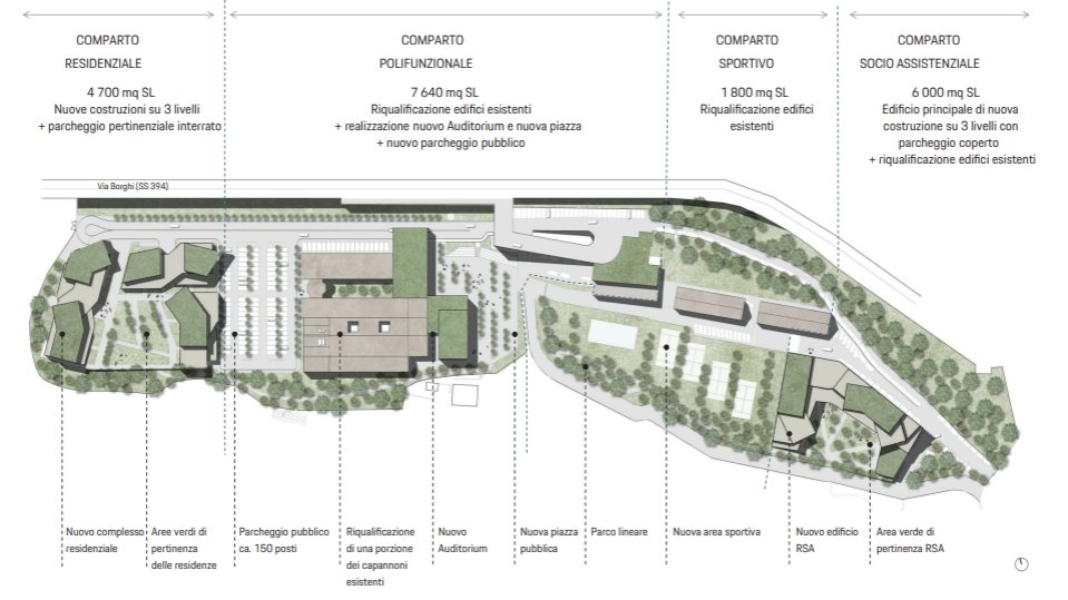 L'intervento sull'ex area industriale Whirlpool si basa sulla creazione di tre macro zone